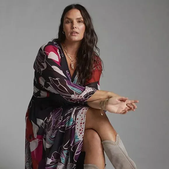 #BX270-2X/bx672-s/bx95/bx402-s/bx185-XS/#ez5Style No. 4130344600121;About Let Me BeCombining feminine details with timeless silhouettes, Let Me Be's dreamy collection is crafted from the finest of fabrics and embellished with handcrafted beadwork and embroidery.Viscose; polyester liningV-neckMidi silhouetteSide zipHand washImportedDimensionsPlus falls 54" from shoulder; hem hits at mid-calfsize 2Xwaist 46"size Swaist 28"size XSwaist 26"new with tag
