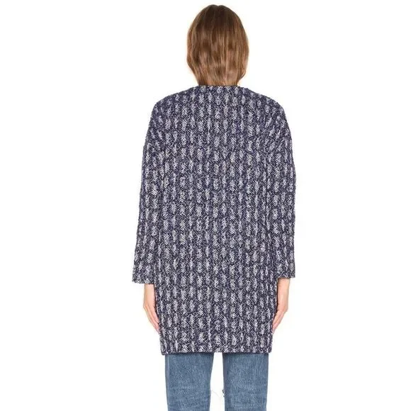NEW Blue & white long front zip up side pocket tweed coat by Tularosa. Featuring collarless, long sleeve, front pockets.Women's Size Large48-50" Chest36" LengthFabric Content: Self: 70% polyester 30% wool /Lining: 97% polyester 3% elastane Hand wash cold. *Model: 5'11" so if you are shorter, 5'5 more of a knee length coat.Great style for fall attire into winter or spring! Exposed front zipper closure. Side seam pockets.Navy and white tweed,outerwear fall/winter collarless zip up mid length fall or winter coat.Great length to wear open or zip closure a mid-length coat destined to top your favorite turtlenecks and cable knitted pieces just in time for winter! This coat looks like your vintage outerwear dream.Tweed knee length coat!