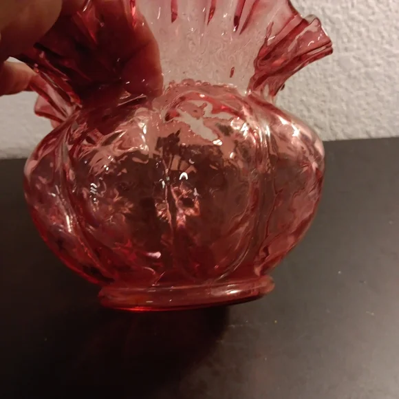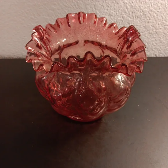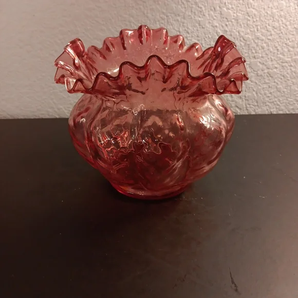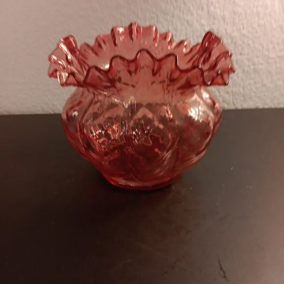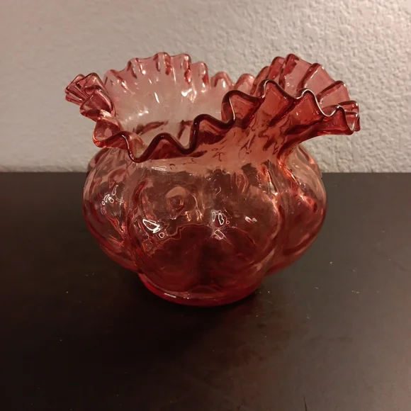 GORGEOUS VTG 6" Fenton Cranberry Diamond Optic Ruffled Melon Rose Bowl Vase.This vintage Fenton vase is a stunning addition to any collection. The intricate cranberry diamond optic pattern and ruffled melon shape make it a unique piece. Perfect for displaying a beautiful bouquet of roses, this vase is sure to catch the eye with its vibrant pink color. The Fenton brand is synonymous with quality and craftsmanship, ensuring that this vase is a timeless piece that can be enjoyed for years to come.Several other Fenton collectibles sold separately